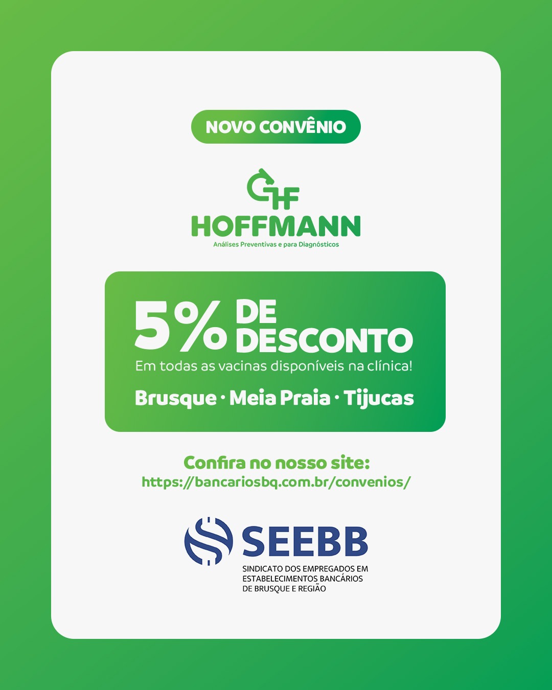 Benefícios: Desconto de 5% em todas as vacinas disponíveis na clínica.