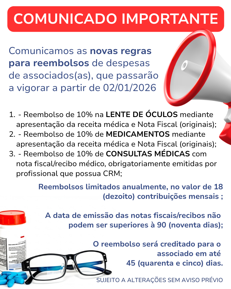 Consulta Médica será ressarcida 10% do valor da consulta, mediante apresentação do recibo médico ou nota fiscal (emitidos por clínicas ou profissional com registro no CRM);