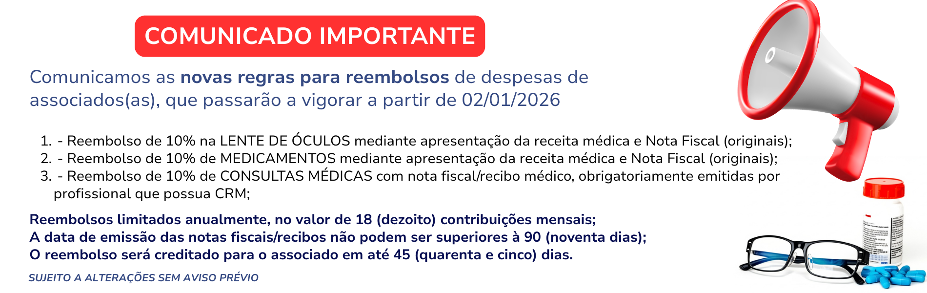 Remédios serão ressarcidos 10% de despesas com medicamentos mediante apresentação da receita médica e nota fiscal;