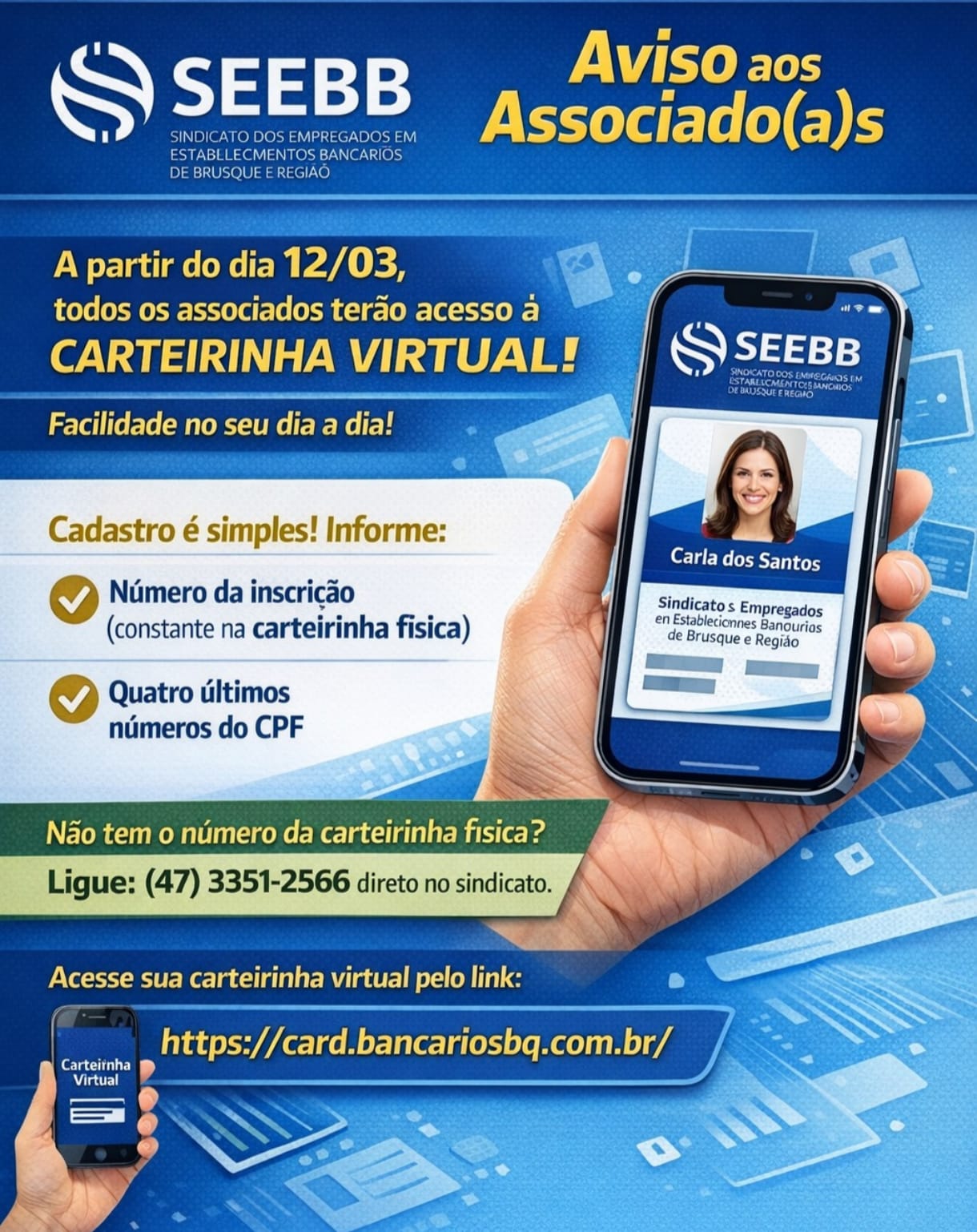 - Sempre que vierem comprar é importante apresentar a carteirinha para fins de comprovação de cadastro;