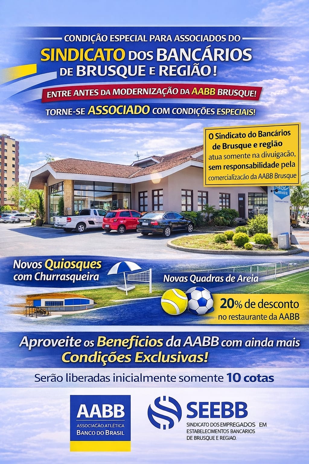 🤝 PARCERIA AABB BRUSQUE & SINDICATO DOS BANCÁRIOS⭐ Condição especial para associados do Sindicato Você sabia que também pode ser