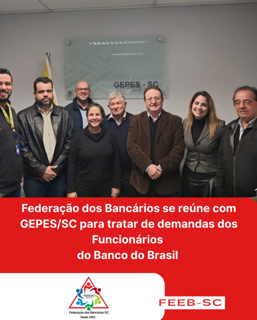 Na última sexta-feira, 08 de agosto, representantes da Federação dos Bancários de Santa Catarina – FEEB/SC estiveram reunidos na sede da GEPES SC, localizada na Praça XV, em Florianópolis. A reunião foi solicitada pela Federação em atendimento às reivindicações de sindicatos de sua base, que encaminharam temas específicos e casos pontuais envolvendo funcionários do Banco do Brasil.